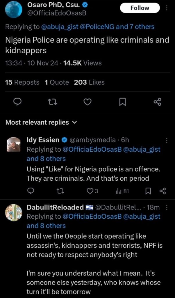 “Are we going to be running away from thieves, armed robbers and kidnappers, and still be running away from Nigeria Police that are supposed to be protecting us?