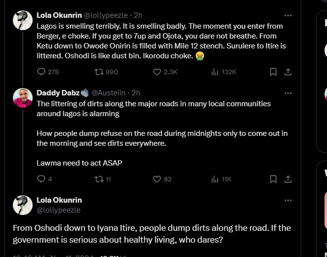 NewsNewssNetizen Complains About Offensive Air That Permit The Air In Some Part Of Lagos As A Result Of The Incinerators And Illegal Dumping Of Dirt, By Implication The Health Consequences.30 0 by thesubstancenewsNovember 11, 2024November 11, 2024