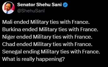 Senator Sani Queries African Countries Discontinued Relationships With France After Tinubu Forges Friendship With Macron.