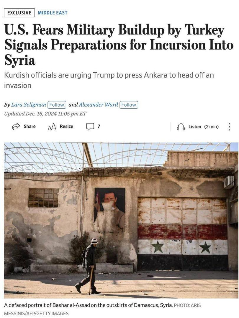 The U.S. fears Türkiye’s military buildup near the Syrian border signals an imminent incursion into PKK/YPG rebel group held Ayn al-Arab. PKK/YPG/PYD officials urged President-elect Trump to pressure Turkish President Erdogan.