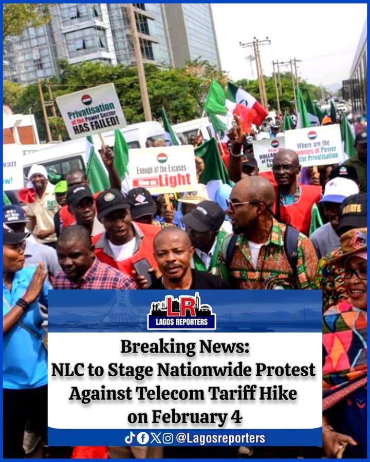 The Nigeria Labour Congress (NLC) has announced plans to embark on a nationwide protest on Tuesday, February 4, to oppose the recent 50% increase in telecommunication tariffs approved by the Nigerian Communications Commission (NCC).