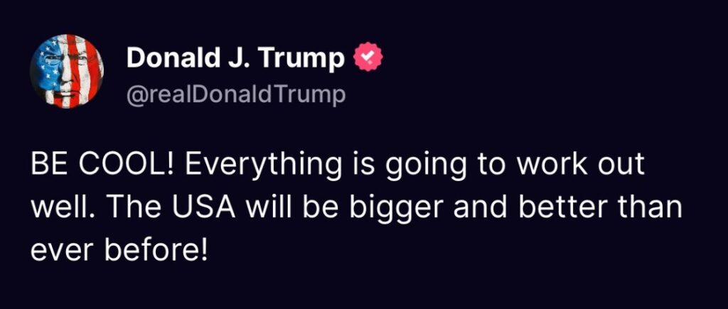 President Donald Trump Assures Americans That Things Will Be Fine, He Urged Them To Be “Cool”