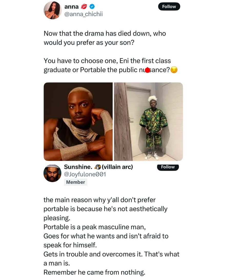 Twitter: Picking Between Controversial Musician Portable Over First Crocs Ambassador In Nigeria Eniola Adeoluwa As Son