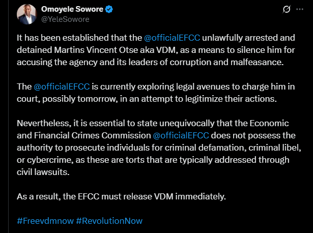 Omoyele Sowore Advocates For VDM’s Release