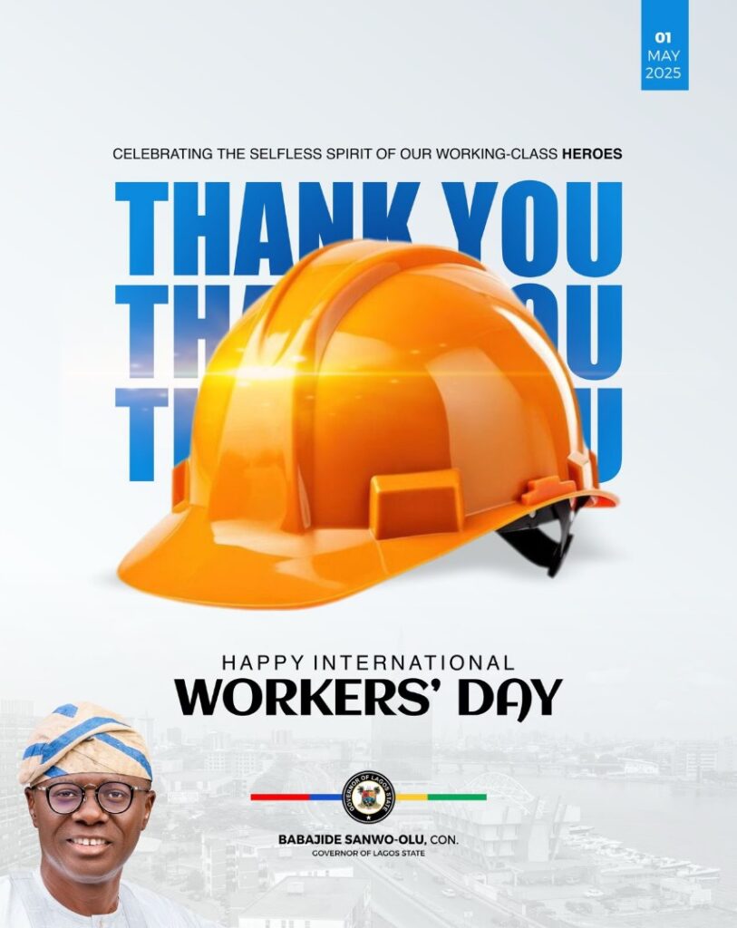 “Together, we are building a smarter, stronger, and more vibrant Lagos. Happy Workers Day, Lagos.” Governor Babajide Sanwo-Olu