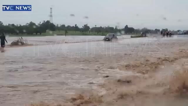 According to video footage shared by TVC News, the presidential convoy encountered severe flooding while en route to Makurdi..