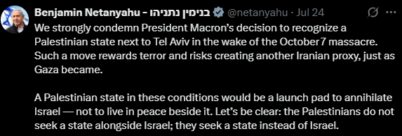Israeli Prime Minister Benjamin Netanyahu Condemns French President Emmanuel Macron’s Decision To Recognize A Palestinian State