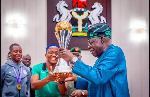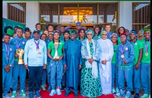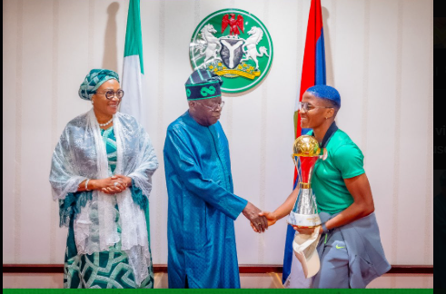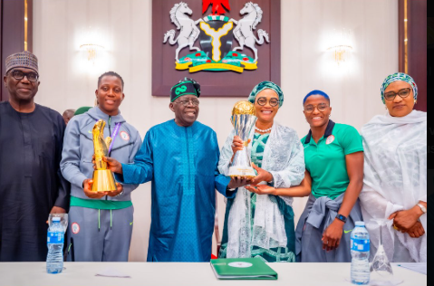 President Bola Tinubu confers National Honours of Officer of Order of Niger on the Super Falcons players who in an astonishing moment beat Morocco Atlas Lionesses 3-2 on Saturday, to bring back the trophy home for the tenth time in a roll and pride to the country