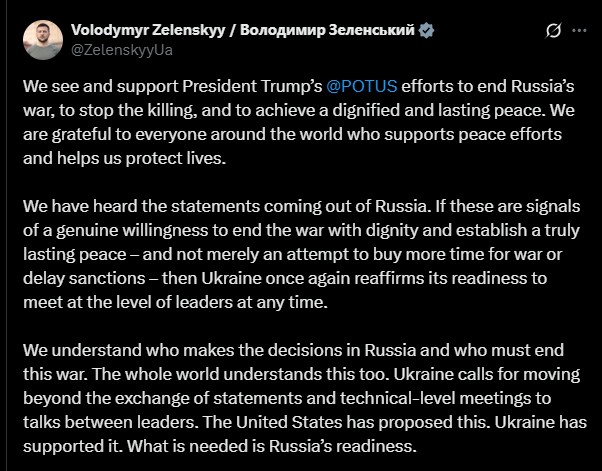 Volodymyr Zelenskyy Backs U.S. President Trumps Effort To End Ukrain-Russia War