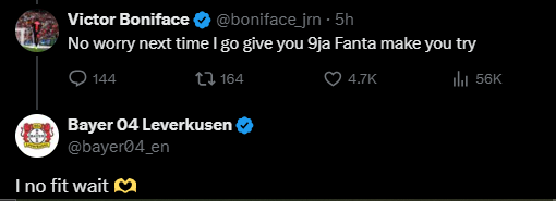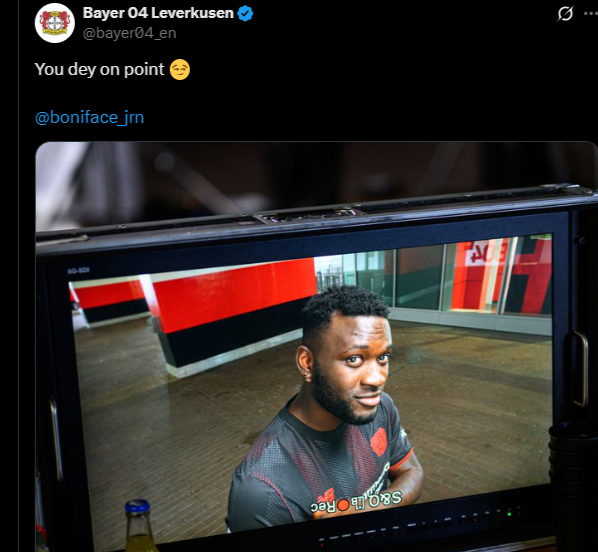NewsSports“You Dey On Point”—Bayer 04 Leverkusen In A Banter With Its Nigerian Player, Victor Boniface20 0 by thesubstancenewsAugust 13, 2025August 13, 2025