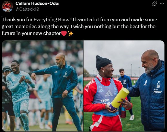 Nottingham Forest Winger, Callum Hudson-Odoi Pens Emotional Messages To Former Manager Nuno Espírito Santo