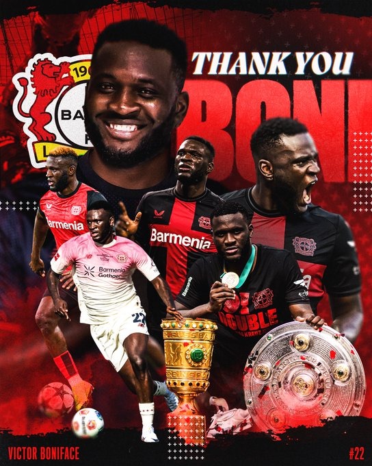 Sports60 by thesubstancenewsSeptember 2, 2025September 2, 2025 “Thank you for everything Boni, you’ll always be a double winner.” Bayer 04 Leverkusen to Boniface
