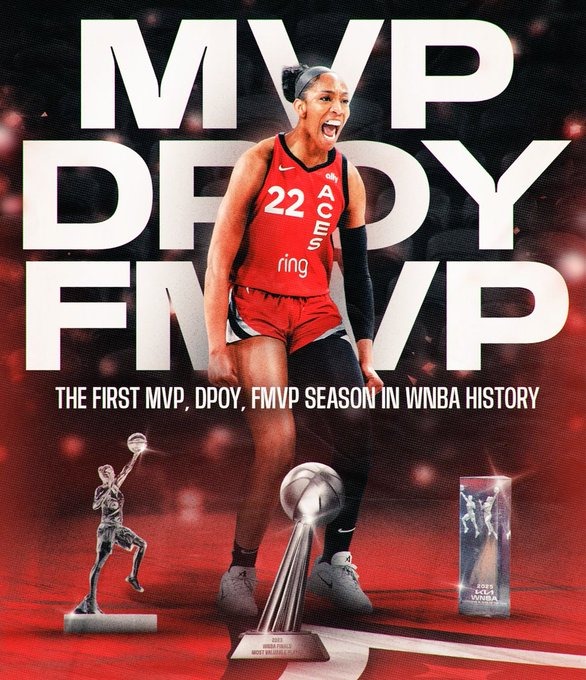 A’ja Wilson Becomes The First Player In WNBA History To Win Most Valuable Player, Defensive Player Of The Year And Finals MVP In A Single Season.