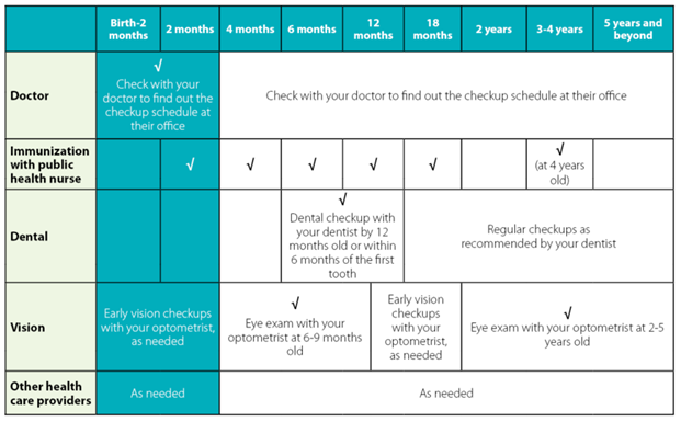 TYPICAL SCHEDULES FOR BABY CHECKUPS