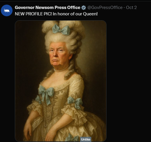 California Governor Newsom Mocks President Trump, Calls Him  “Our Queen” In An AI Picture