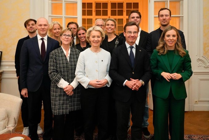 European Commission President Ursula von der Leyen in Sweden: “Touchdown in Stockholm and working dinner with @SwedishPM and Swedish companies.