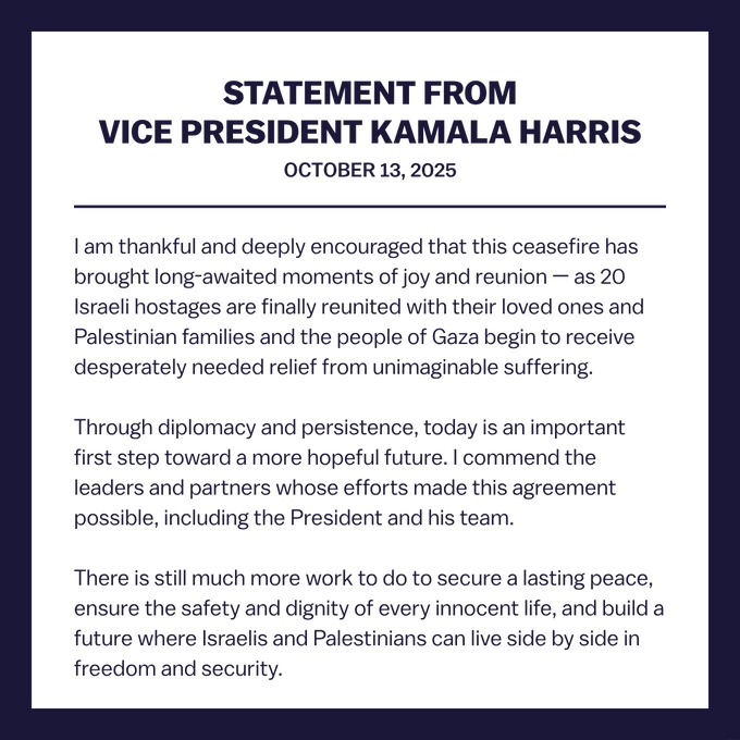 Former US Vice President Kamala Harris Statement On The Middle East Ceasefire