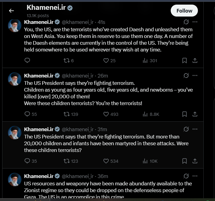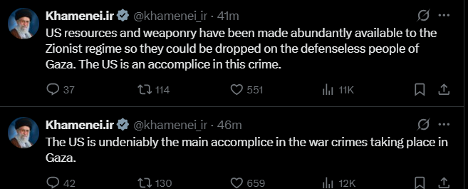 Iranian Supreme Leader Ayatollah Ali Khamenei Accuses U.S Of Gaza War Crimes