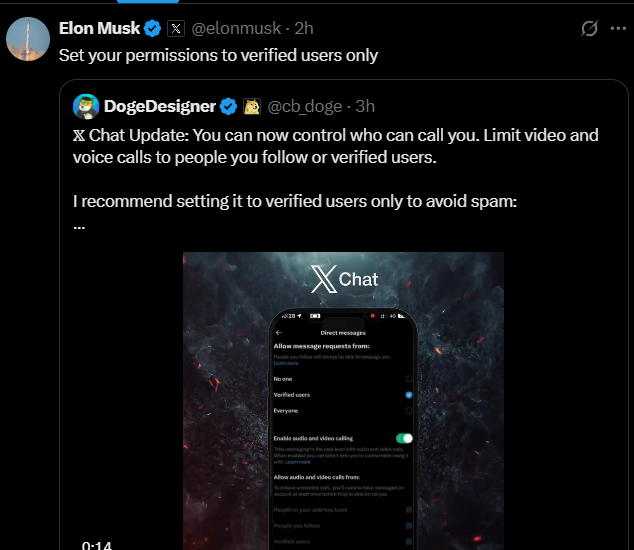 He also advised restricting direct messages and calls to verified or followed accounts to reduce unsolicited interactions.