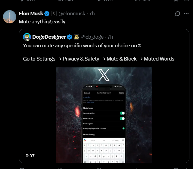 Tech billionaire and X CEO Elon Musk, shared tips on Thursday for users to mute specific words, phrases, and emojis to filter spam from timelines and notifications.