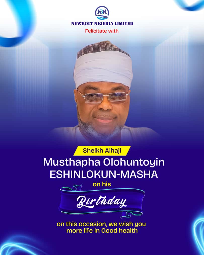 October 18, 2025Newbolt Nigeria Limited Felicitate with Sheikh Alhaji Mustapha Olohuntoyin Eshinlokun -Masha on the occasion of his Birthday