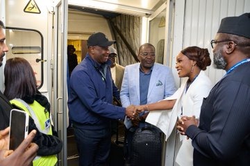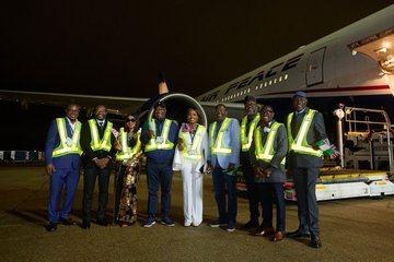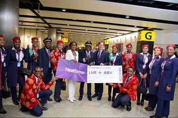 Air Peace: Our maiden flight into Heathrow from Abuja was welcomed by our Executive Director of Air Peace Limited, Ms. Nnenna Onyema who ushered in the high-powered delegation of the Honorable Minister of Aviation and Aerospace Development, Hon. Festus Keyamo, SAN @fkeyamo alongside the Deputy Chief of Staff to the President of the Federal Republic of Nigeria, Hon. Ibrahim Hassan Hadejia.