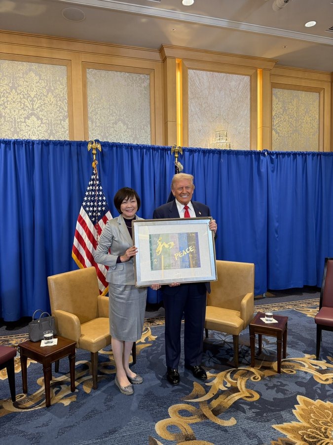 October 28, 2025President Trump Meets With Wife Of Assassinated Japan’s P.M Mrs. Abe, Receives A Piece Of Art That She Created With A Message Of Peace.