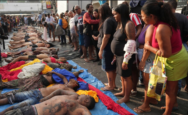 Earlier Wednesday, in the neighborhood of Penha, residents had surrounded many of the bodies — collected in trucks and displayed in a main square — and shouted “massacre” and “justice” before forensic authorities arrived to retrieve the remains.