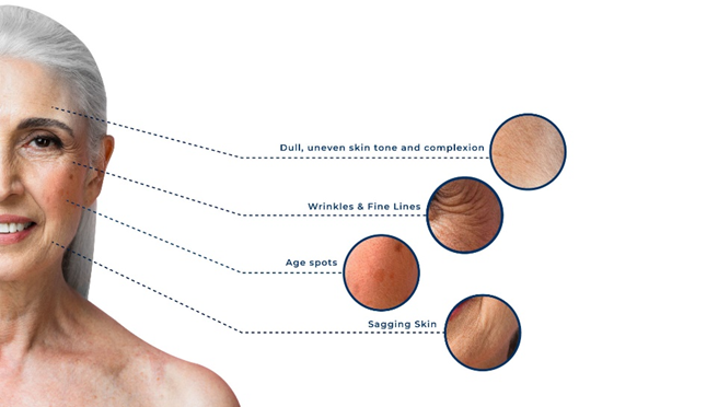 FINE LINES & WRINKLES: Repeated facial expressions, sun exposure, and collagen loss lead to visible lines.