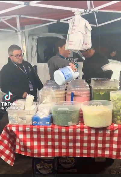 In a video circulating on social media, depicting a real incident from November 16, 2025, at a Denver event, where a city health inspector poured liquid—likely bleach—into a vendor’s food preparations like guacamole and onions to render them inedible after a violation.