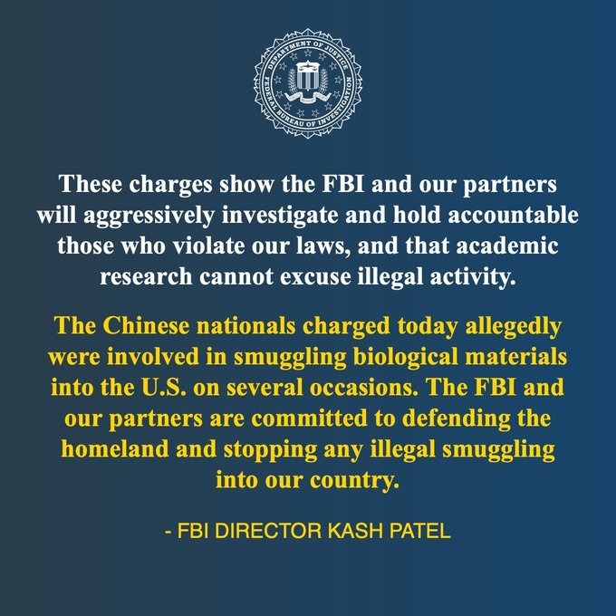 That case had already highlighted the links between Chinese government-funded research and the illegal introduction of pathogens into the U.S., underscoring the risk to agricultural and national security posed by biotechnological espionage.