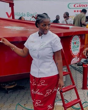 Nigerian chef Hilda Effiong Baci received physical plaques from Guinness World Records on Thursday for her 2023 93-hour cooking marathon in Lagos and her September 12, 2025, preparation of 8,780 kilograms of jollof rice at the Gino World Jollof Festival in Lagos.