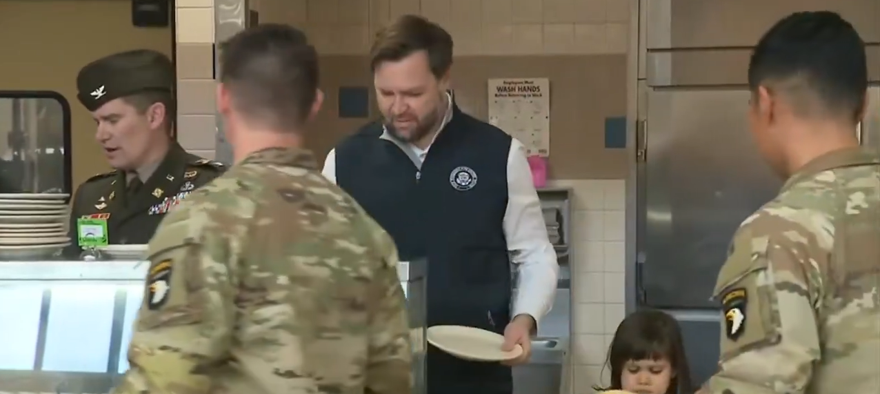 JD Vance and his family in Fort Campbell, KY serving Thanksgiving meals to US troops and their kids
