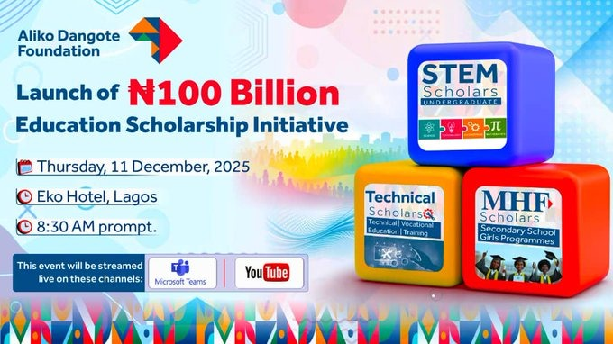 Alhaji Aliko Dangote on Thursday at Eko Hotel In Lagos State launched the N100 Billion Annual Education Scholarship Programme of his Foundation., targeting undergraduates in STEM, vocational training, and secondary school girls across Nigeria.