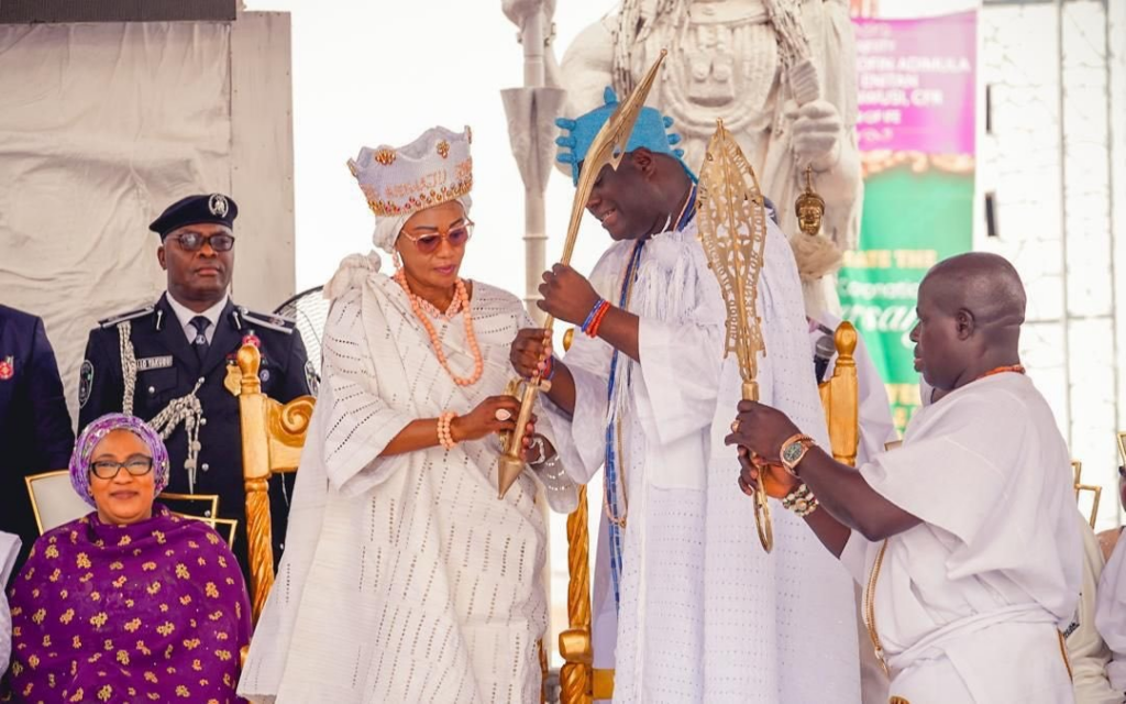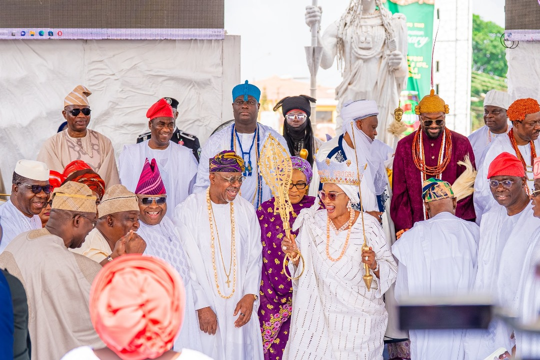 The First Lady of the Federal Republic of Nigeria senator Oluremi Tinubu, on Sunday was installed as the Yeye Asiwaju Gbogbo Ilẹ Oodua by His Royal Majesty, Ọọni of Ile-Ifẹ, Ọba Adeyẹye Ẹnitan Ogunwusi, Ọjaja II, during celebrations marking the 10th coronation anniversary of the Ooni, for her service to the nation and efforts in cultural preservation and Yoruba unity.