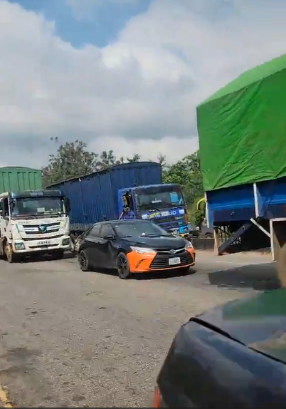 Inter-City Coach Drivers Unites To Barricade The Road Against Nigerian Police Officer Who Shot The Tire Of A Luxury Bus After He Demanded For Bribe, Demands For Replacement