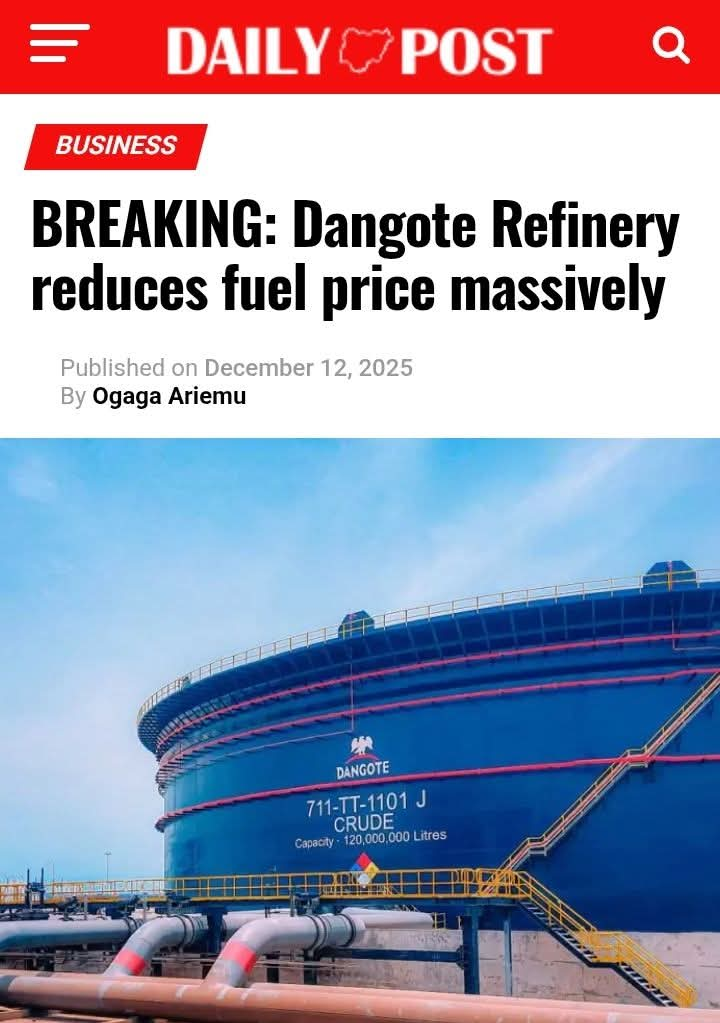 So when today, Dangote Refinery reduced the ex-depot rate from N828 to N699 per litre, my heart rejoices because things will get better for Nigerians.