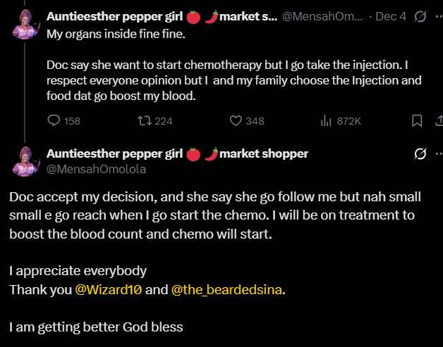 X: Jehovah Witness Member Who Refuses Blood Transfusion In Her Cancer Treatment Says Her Organ Is Fine
