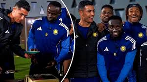Al Nassr Captain Cristiano Ronaldo, In A Playful Mood Hug His Team Mate, Senegalese Sadio Mane Whose Country Beat Morocco To Win The AFCON Trophy