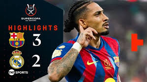 Barcelona Winger With Former British Defender Ferdinand Rio, After Raphinha’s Brace Secures The Football Club 3-2 Supercopa Win Over Madrid.