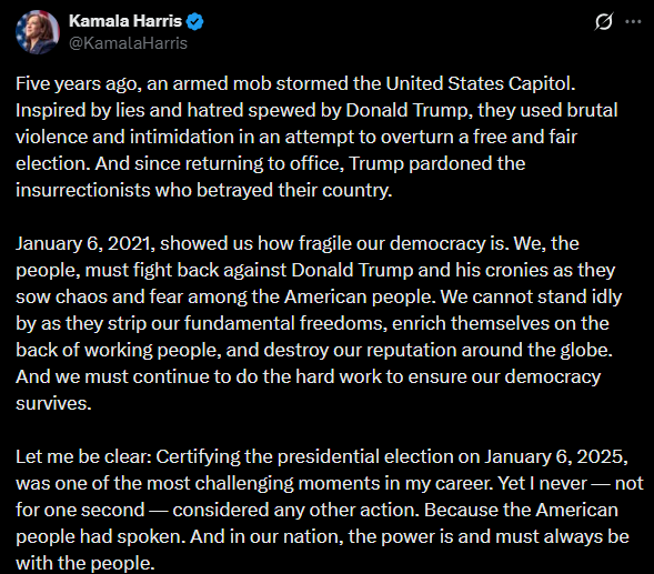 NewsFormer U.S V.P Kamala Harris, Calls Out President Trump Administration For Pardoning January 6er, Urge Americans To Ensure Democracy Survival.60 by thesubstancenewsJanuary 7, 2026January 7, 2026