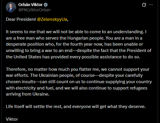 Hungarian President Orbán Viktor Declines Support To Zelenskky, Blames Him For His Inability To End Ukraine/Russia War.
