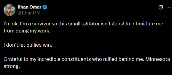 “I Don’t Let Bullies Win”—U.S. Rep. Ilhan Omar Responds After Man Sprayed Her With An Unknown Substance During A Town Hall Event In Minnesota.