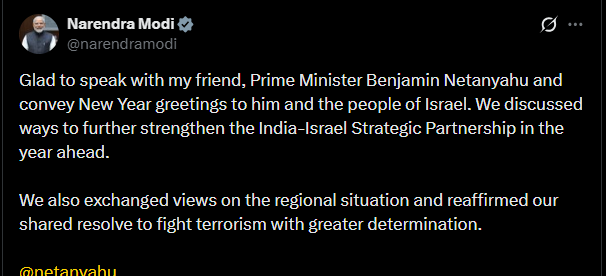 India And Israel Discusses Ways To Further Strengthen Strategic Partnership In The New Year, Modi Reveals