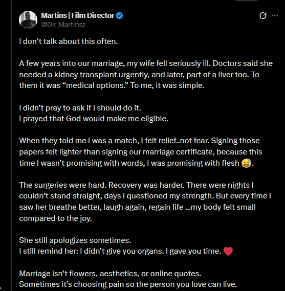 Man Narrates How He Donate Kidney For His Wife, Says “Every Time I Saw Her Breathe Better, Laugh Again, Regain Life …My Body Felt Small Compared To The Joy.”