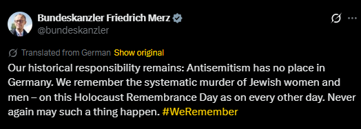 “Never Again May Such A Thing Happen.”— German Chancellor Bundeskanzler Friedrich Merz Declares On Holocaust International Day