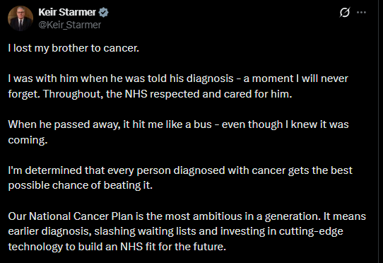 2026 World Cancer Day: Narrates The Trauma Of Losing His Brother To Cancer, Vows Every Patients ‘Gets The Best Possible Chance Of Beating It.’