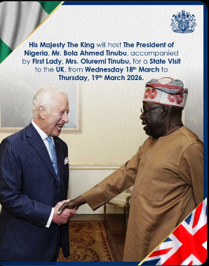 The Royal Family: “The President of the Federal Republic of Nigeria, Mr. Bola Ahmed Tinubu, accompanied by the First Lady, Mrs. Oluremi Tinubu, has accepted an invitation from His Majesty.
