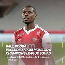 Paul Pogba has been excluded from AS Monaco’s Champions League squad, RMC Sport reports.