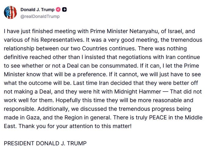 President Trump After Meeting With Israeli Prime Minister Netanyahu Over Middle East Crises, Is Indecisive Over Iran Freedom Fighting Protest.
